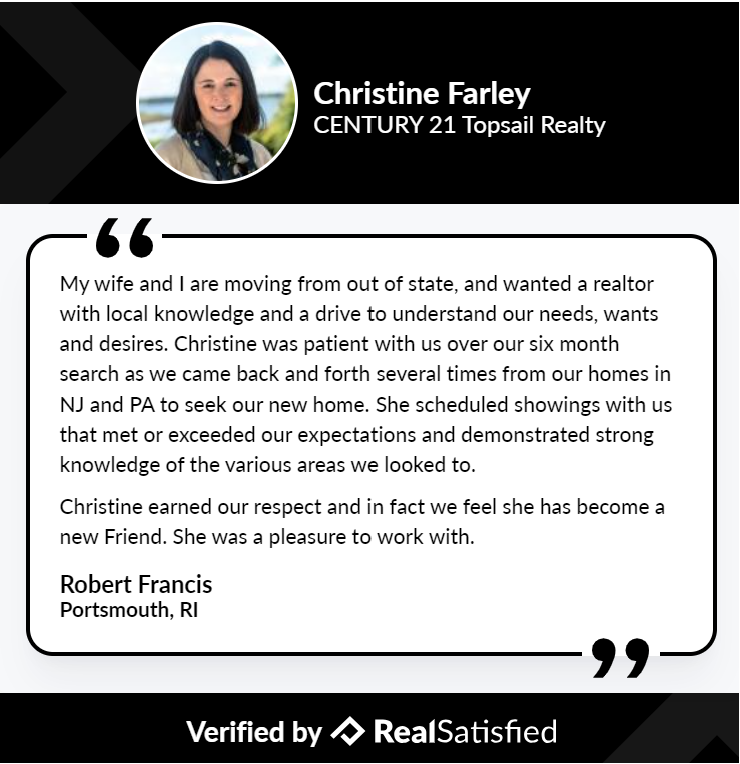 Christine Farley is a licensed REALTOR with 18 years of experience, specializing in the East Bay communities of Rhode Island and Southeastern Massachusetts. Serving buyers and sellers in Portsmouth, Newport, Bristol, Tiverton, and surrounding areas, she brings a calm and knowledgeable approach to every transaction. Christine is known for her clear communication, deep local market insight, and steady guidance, making her an anchor for clients throughout the process. From first-time homebuyers to investors, she offers strategic support, meticulous attention to detail, and proven results. Certified as an Accredited Buyer’s Representative (ABR), Christine is committed to delivering exceptional service with trust and reliability.